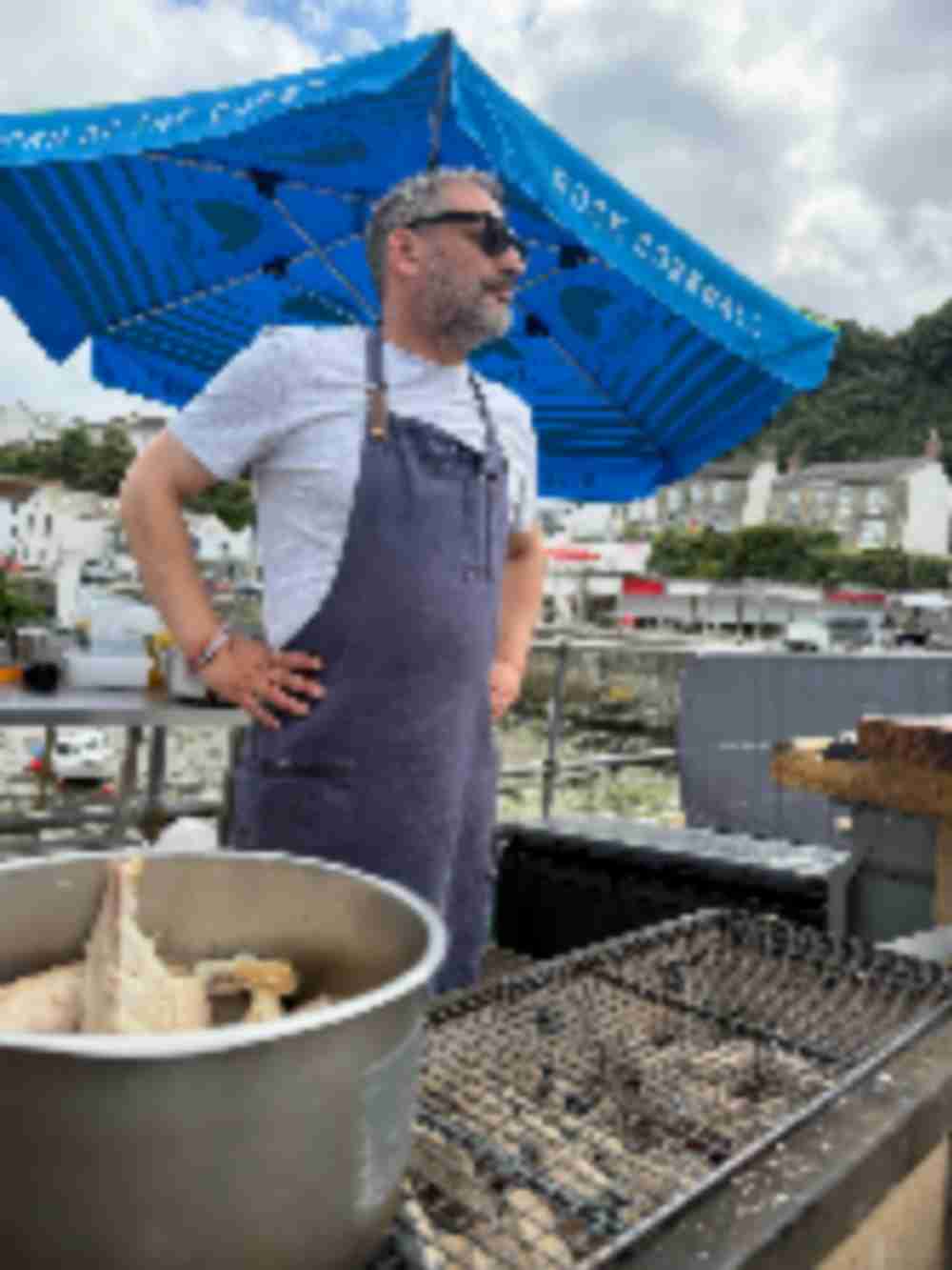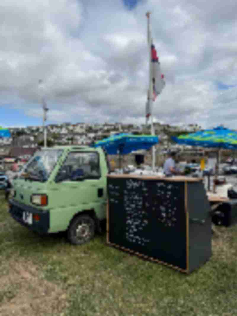Mobile seafood barbecue, serving locally caught mackerel, oysters, and scallops.